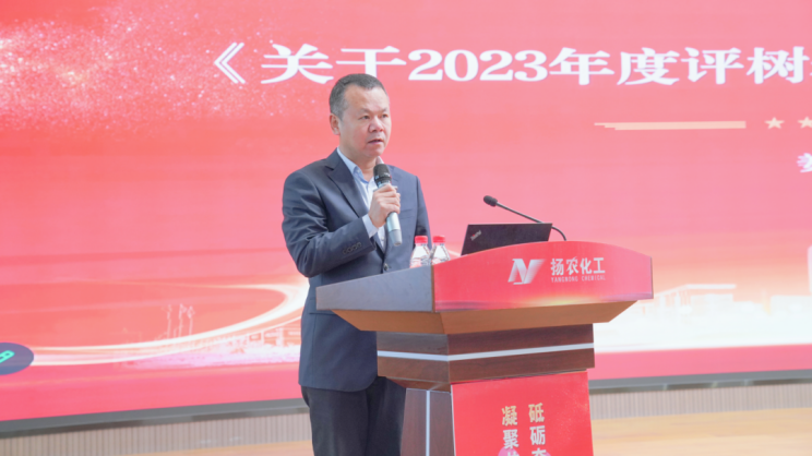 公司纪委书记、副总司理姜友法宣读了公司《二〇二三年度评优(一级)表扬决议》。。。。。。。