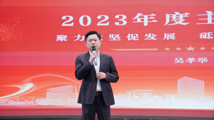 吴孝举作题为“聚力攻坚促生长 砥砺奋进创未来”的年度主旨报告,,,,,,,从2023年战略执行情形、2024年内外部情形、谋划目的及重点战略、重点落执行动四个方面举行相识读。。。。。。。